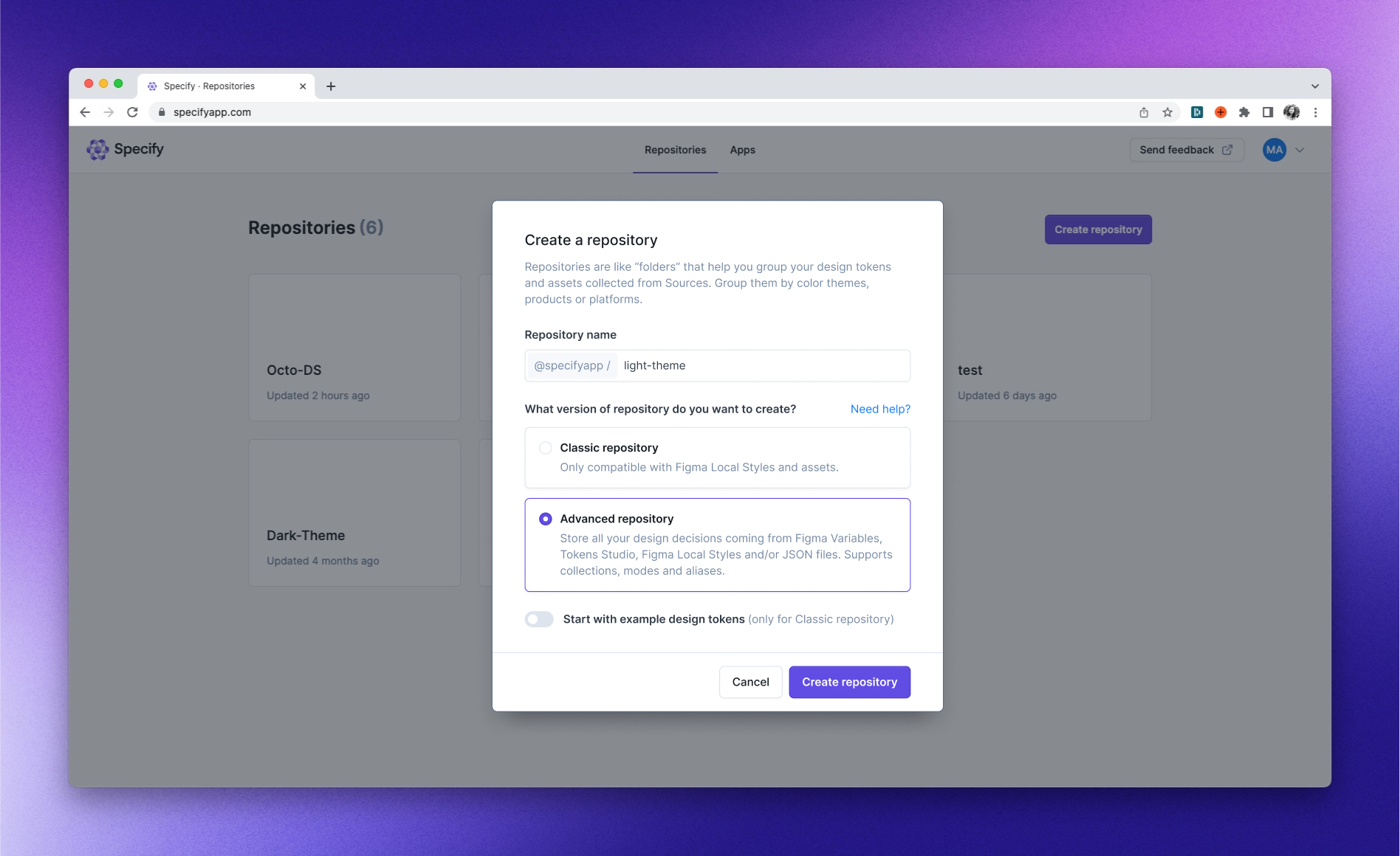 1. Sync your Figma Variables and Styles with a Specify Repository