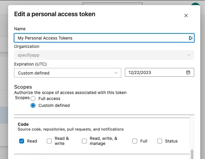 https://gitlab.com/api/v4/projects/{OrgName}%2F{RepositoryName}/repository/files/{FilePath}?ref={branch}Create an access token in GitLab: "Settings > Access Tokens". Select a role as Developer or Owner and select the scopes of read_api and read_repository.
