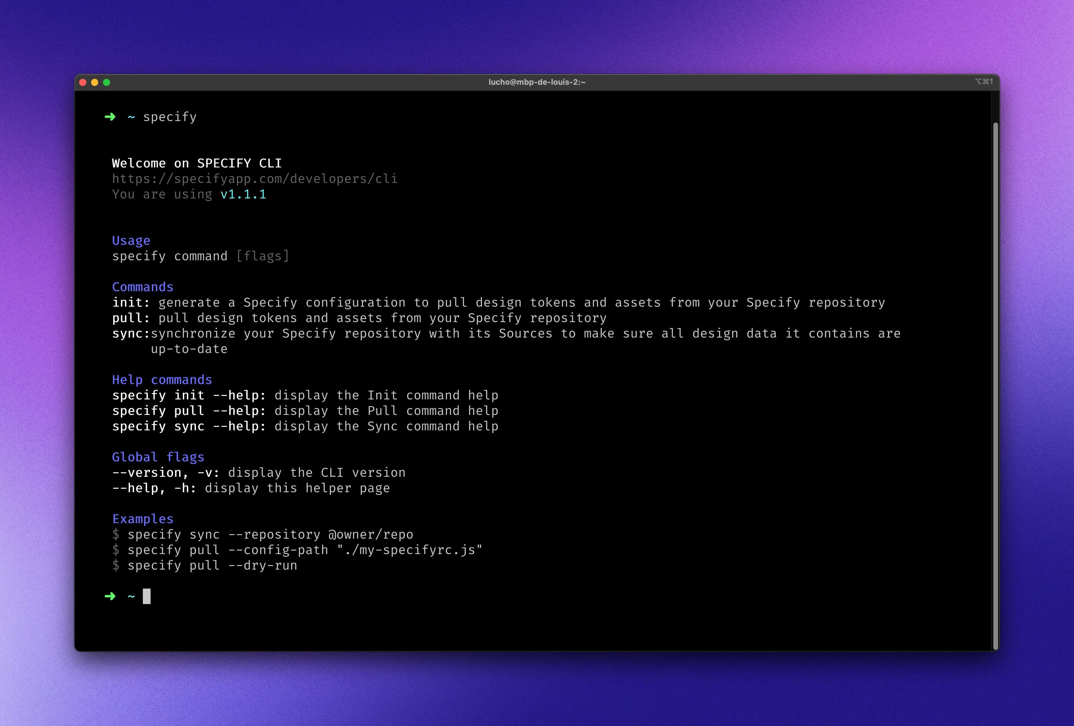 Install `@specifyapp/cli` via npm or Yarn.